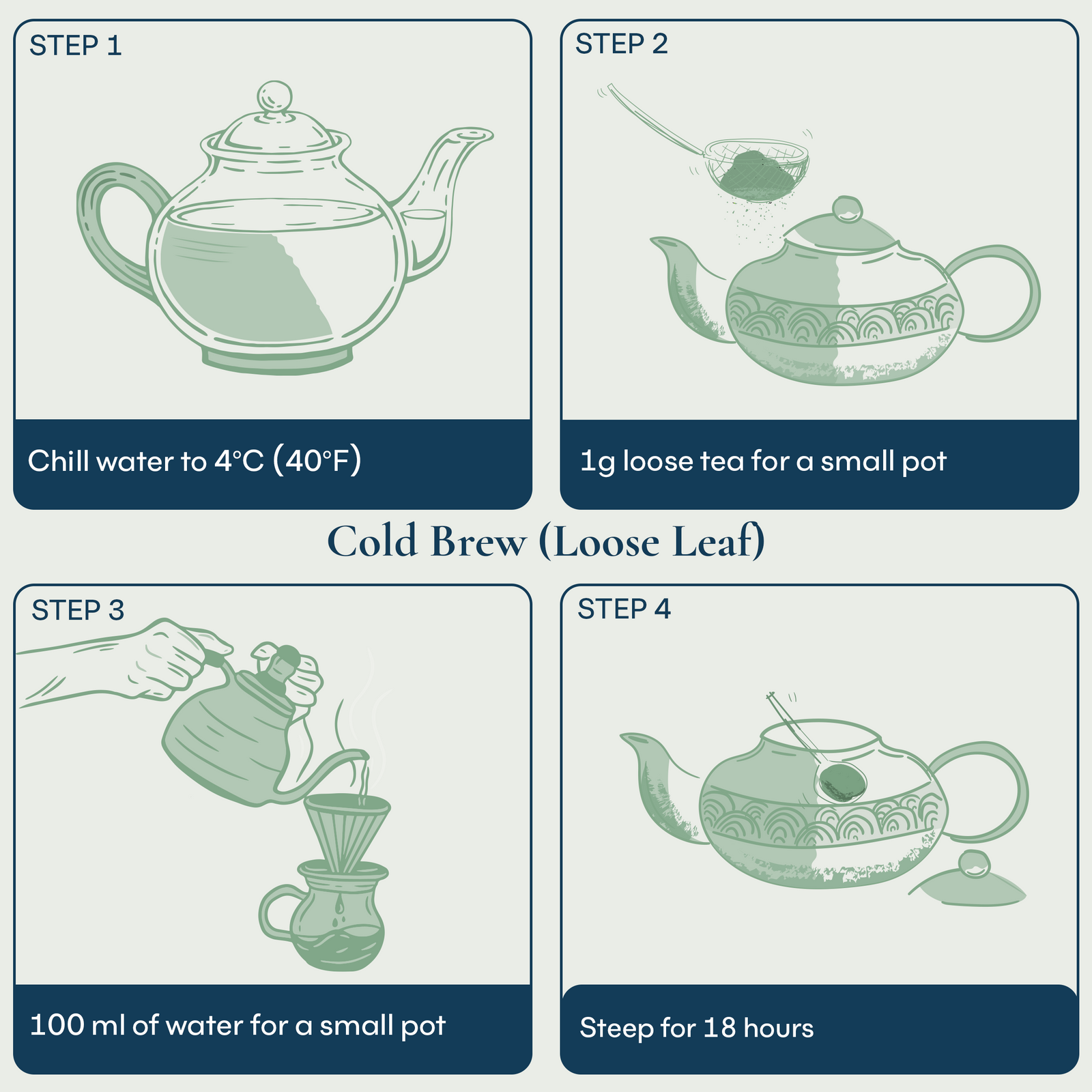 Measure 1g of loose tea into a small pot. This amount keeps the cold brew light and balanced.